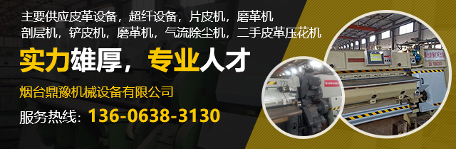煙臺鼎豫機械設備有限公司位于山東省煙臺市芝罘區楚玉路238號泰和工業(yè)園,我公司主要經營皮革機械設備,超纖設備及配件的生產,銷售。我們有好的產品和專業(yè)的銷售和技術團隊,主要供應皮革設備,超纖設備,片皮機,磨革機,剖層機,鏟皮機,磨革機,氣流除塵機,二手皮革壓花機。我們具有專業(yè)維修國內外各種型號精密片皮機的技術和能力,承攬大中小維修機械的業(yè)務。定制各種型號帶刀、砂輪等。